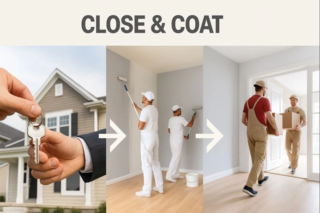 Close & Coat is the move-in-ready painting experience designed for new home buyers who want their house to feel like their home—fast. We start with photorealistic digital paint renderings so you can see your color options before any work begins. Then we deliver a clear quote and a closing-aligned schedule that finishes before the movers arrive. No drawn-out projects, no living in a renovation—just a home you’re proud to walk into on day one.