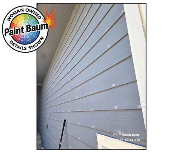 When nails back out they split the paint film and create tiny funnels for water. We set (sink) each nail, secure or replace as needed, then float the area with exterior-grade filler so the surface is smooth and sealed. After sanding and priming, the topcoat restores a continuous protective barrier that blocks wind‑driven moisture from wicking along the fastener line and creeping behind the siding—where it can quietly rot wood from the inside out. Proper nail-pop repair helps prevent peeling, staining, and expensive structural damage. Fix the pop, stop the rot.